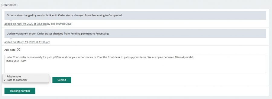If you have a local-pick up order, go into the Order send a “Customer Note” to let them know when their order is ready! You can always call the customer as well.